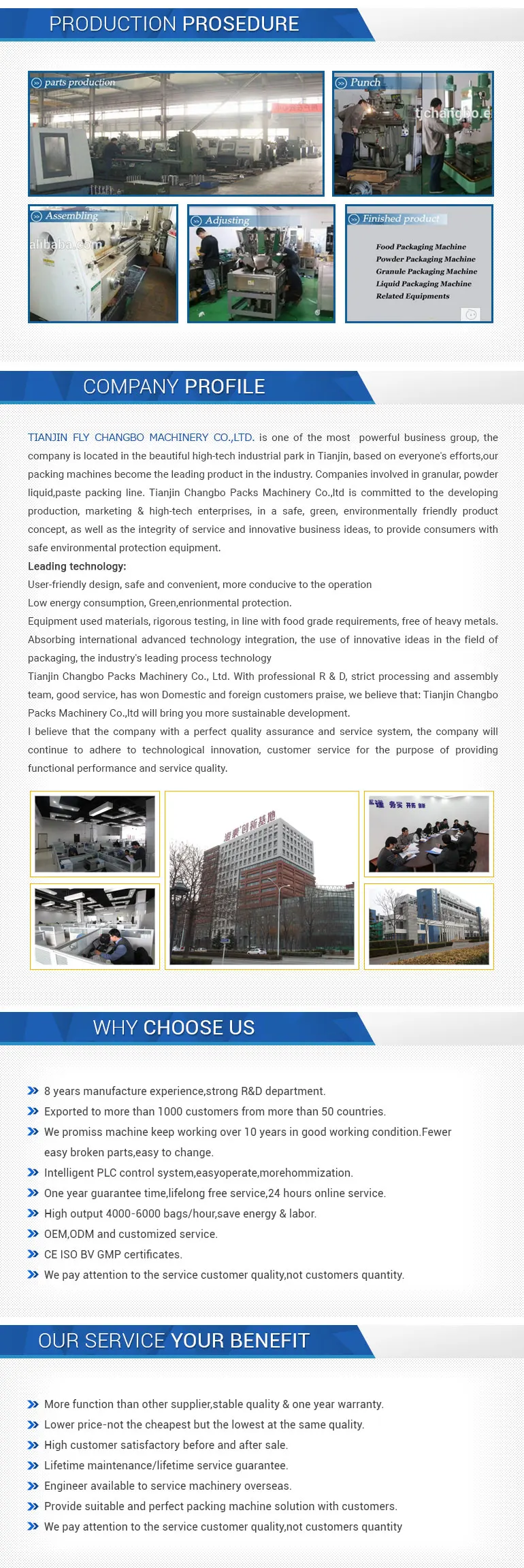 1> CB-420P 250g 500g 1kg Automatic powder spice packaging machine good price is our company absorb foreign advanced technology, and is improved and the production of a kind of high quality, high performance automatic packaging machine,complete automatic feeding,measuring, bag-making, deviation, filling, sealing, date printing and finished product output and a series of automatic functions.