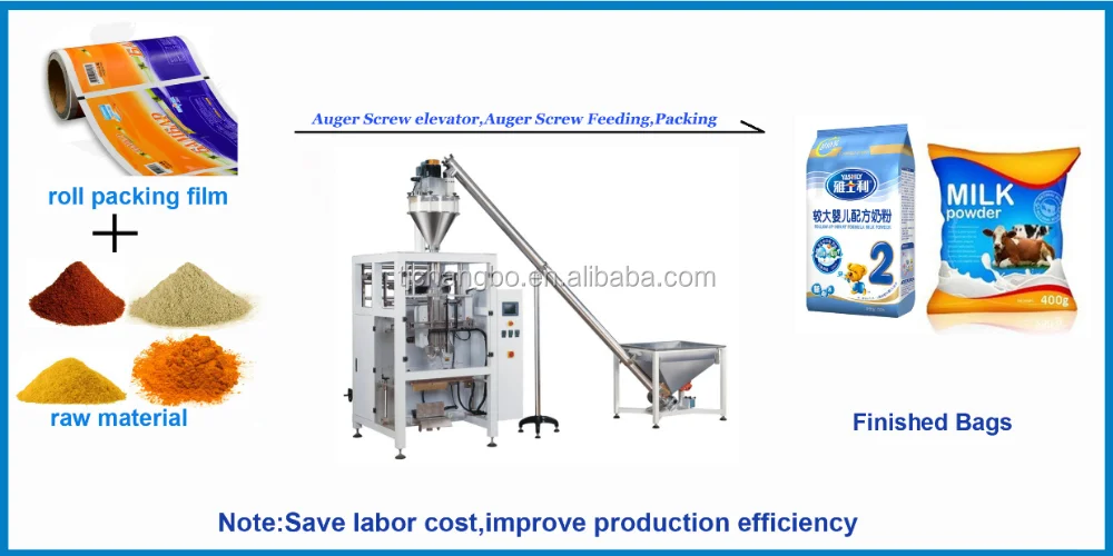 The 250g 500g 1kg Automatic powder spice packaging machine good price can pack powdered products,such as flour,milk powder,corn starch,soy flour,glucose powder,ice cream powder,pepper powder,fish food powder,curry powder,cocoa powder,coffee powder,bean powder,washing powder,alkaline powder,organic fertilizer,etc.
