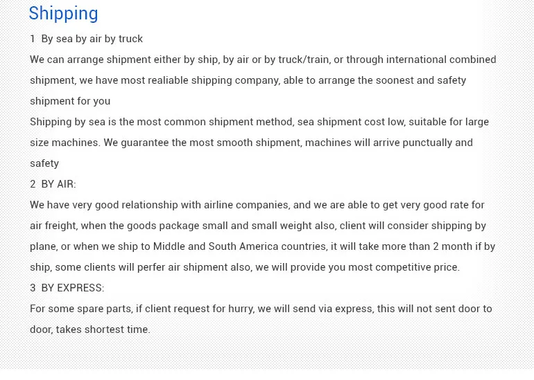 All our machines will be packed according to export standard, solid fumigation wooden cases or solid non original wood package, all guarantee the safety of machines and avoid damage during transportation